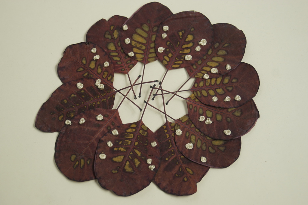 Ecoprint ist eine Färbetechnik, die auf natürliche Farbstoffe zurückzuführen ist. Es wird während des Färbeprozesses der Farbstoff aus der Pflanze extrahiert und gleichzeit ein Abdruck des Blattes erzeugt. Mit Farblaugen aus Pflanzen und Tieren entstehen viele Farbschattierungen, die nicht komplett planbar sind.
